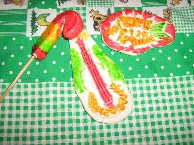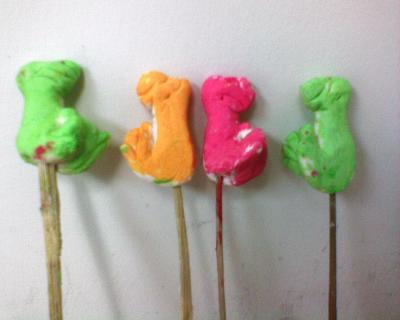 Son figuras creadas por manos de artenos en dulce, los gallitos los pintas de varios colores y son sabrosos.